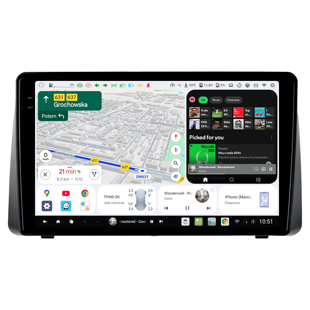 Niezależnie od warunków oświetleniowych, nasze radio samochodowe zapewnia doskonałą czytelność dzięki wyświetlaczowi QLED. Z rozdzielczością 2000x1200px ekran prezentuje wyraźne kolory i ostry obraz, umożliwiając komfortowe korzystanie z różnych aplikacji i funkcji. Dzięki odpowiednim ustawieniom możesz mieć bardzo jasny ekran w dzień oraz ciemny ekran w nocy, który nie będzie ośplepiał w trakcie jazdy.