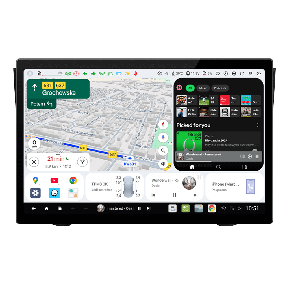 DUDU Auto działa na autorskim systemie operacyjnym DUDU OS, który oferuje intuicyjny interfejs użytkownika, obsługę gestów oraz możliwość kustomizacji, dzięki czemu możesz dostosować urządzenie do swoich preferencji i potrzeb. Dzięki wsparciu dla PIP (Obraz w obrazie), na ekranie głównym możesz wyświetlać nawet dwie aplikacje z zachowaniem dostępu do innych widżetów.