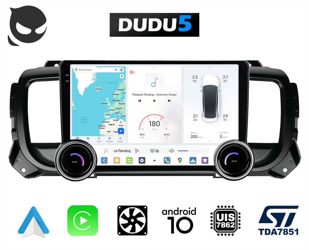 DUDU5 jest oparty na Androidzie 10. Skorzystaj z dostępu do tysięcy aplikacji z Google Play Store, przeglądaj mapy GPS, słuchaj ulubionej muzyki z różnych źródeł, czy też korzystaj z funkcji głosowej obsługi, aby pozostać skoncentrowanym na drodze.