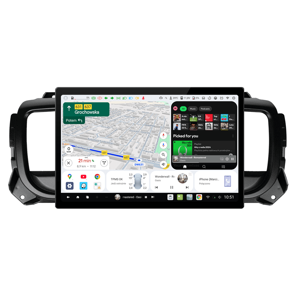 Niezależnie od warunków oświetleniowych, nasze radio samochodowe zapewnia doskonałą czytelność dzięki wyświetlaczowi QLED. Z rozdzielczością 2000x1200px ekran prezentuje wyraźne kolory i ostry obraz, umożliwiając komfortowe korzystanie z różnych aplikacji i funkcji. Dzięki odpowiednim ustawieniom możesz mieć bardzo jasny ekran w dzień oraz ciemny ekran w nocy, który nie będzie ośplepiał w trakcie jazdy.