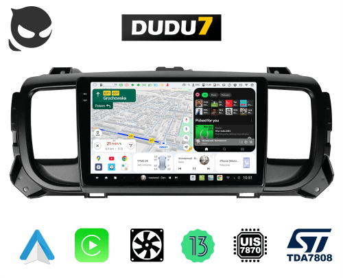 DUDU Auto wykorzystuje najnowszy chipset Unisoc UIS7870 oparty na rdzeniach Cortex-A76 i A55, który zapewnia płynne działanie i niezawodność podczas korzystania z wymagających aplikacji. Najnowszy wzmacniacz audio TDA7808 z obsługą I2S (wzmacniacz przyjmuje dźwięk w zapisie cyfrowym) zapewnia najlepszą możliwą jakość dźwięku.