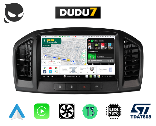 DUDU Auto wykorzystuje najnowszy chipset Unisoc UIS7870 oparty na rdzeniach Cortex-A76 i A55, który zapewnia płynne działanie i niezawodność podczas korzystania z wymagających aplikacji. Najnowszy wzmacniacz audio TDA7808 z obsługą I2S (wzmacniacz przyjmuje dźwięk w zapisie cyfrowym) zapewnia najlepszą możliwą jakość dźwięku.