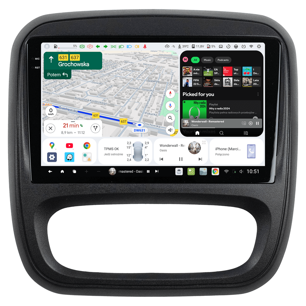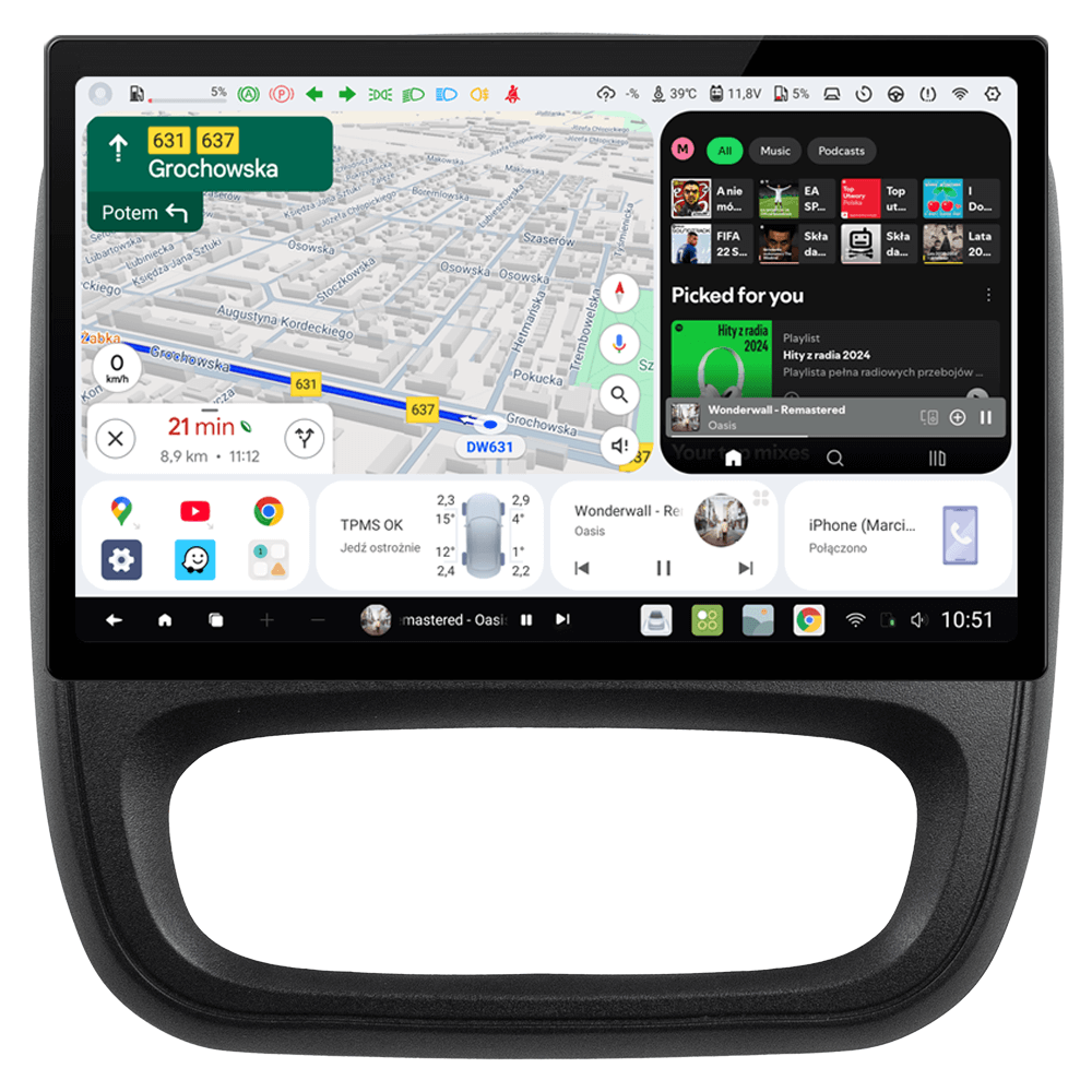 Niezależnie od warunków oświetleniowych, nasze radio samochodowe zapewnia doskonałą czytelność dzięki wyświetlaczowi QLED. Z rozdzielczością 2000x1200px ekran prezentuje wyraźne kolory i ostry obraz, umożliwiając komfortowe korzystanie z różnych aplikacji i funkcji. Dzięki odpowiednim ustawieniom możesz mieć bardzo jasny ekran w dzień oraz ciemny ekran w nocy, który nie będzie ośplepiał w trakcie jazdy.