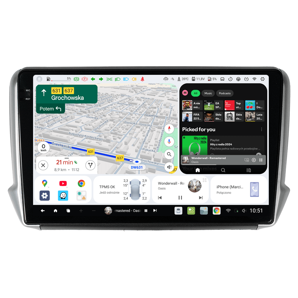 Niezależnie od warunków oświetleniowych, nasze radio samochodowe zapewnia doskonałą czytelność dzięki wyświetlaczowi QLED. Z rozdzielczością 2000x1200px ekran prezentuje wyraźne kolory i ostry obraz, umożliwiając komfortowe korzystanie z różnych aplikacji i funkcji. Dzięki odpowiednim ustawieniom możesz mieć bardzo jasny ekran w dzień oraz ciemny ekran w nocy, który nie będzie ośplepiał w trakcie jazdy.