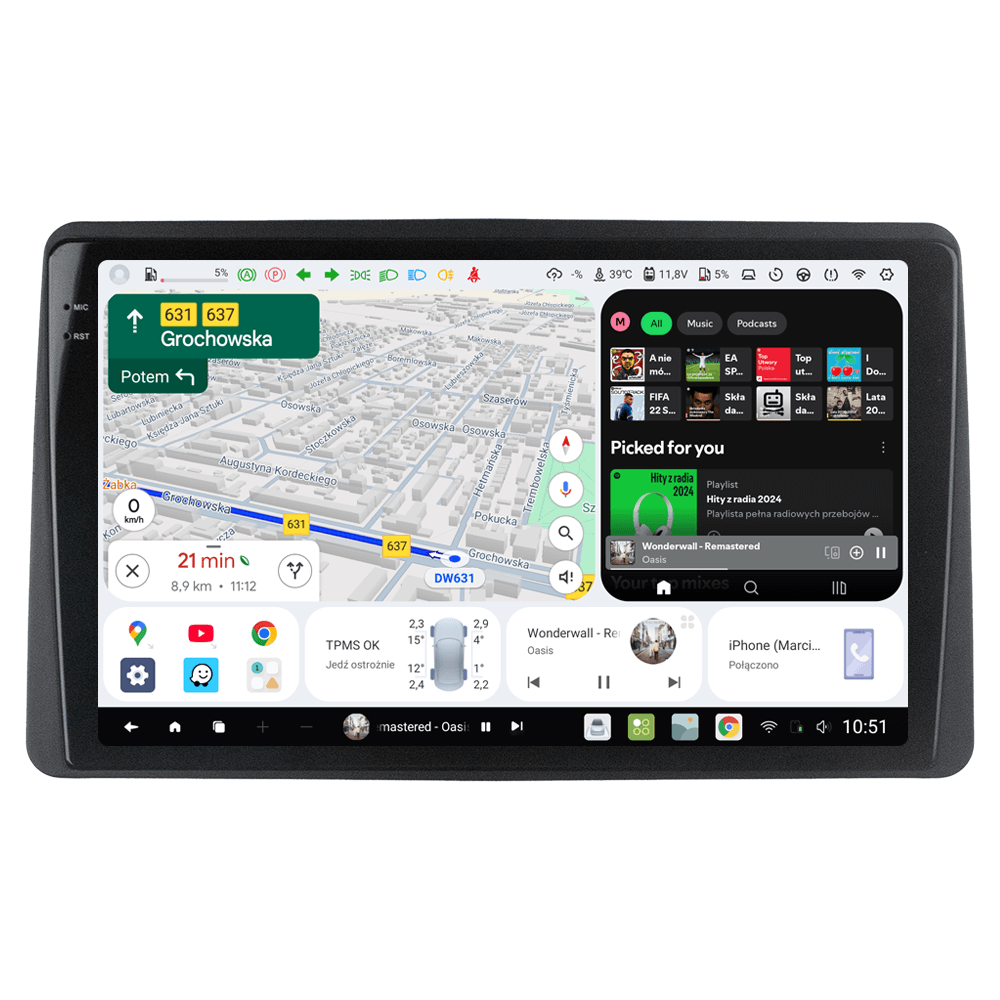 Radio z systemem Android 10 oraz unikalnym systemem operacyjnym.