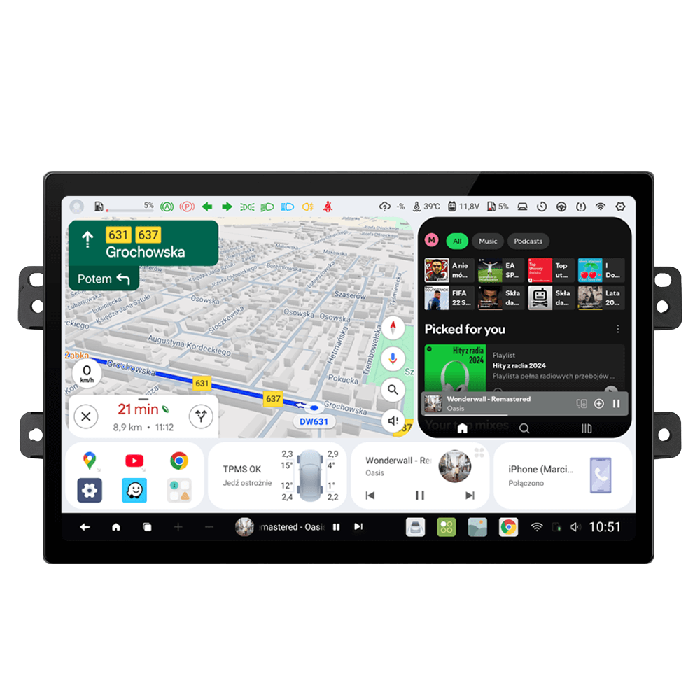 DUDU Auto działa na autorskim systemie operacyjnym DUDU OS, który oferuje intuicyjny interfejs użytkownika, obsługę gestów oraz możliwość kustomizacji, dzięki czemu możesz dostosować urządzenie do swoich preferencji i potrzeb. Dzięki wsparciu dla PIP (Obraz w obrazie), na ekranie głównym możesz wyświetlać nawet dwie aplikacje z zachowaniem dostępu do innych widżetów.