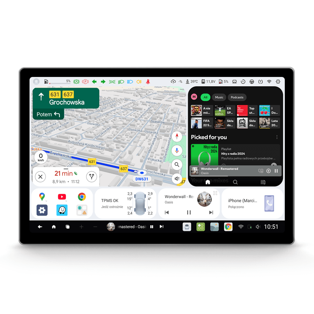 DUDU Auto działa na autorskim systemie operacyjnym DUDU OS, który oferuje intuicyjny interfejs użytkownika, obsługę gestów oraz możliwość kustomizacji, dzięki czemu możesz dostosować urządzenie do swoich preferencji i potrzeb. Dzięki wsparciu dla PIP (Obraz w obrazie), na ekranie głównym możesz wyświetlać nawet dwie aplikacje z zachowaniem dostępu do innych widżetów.
